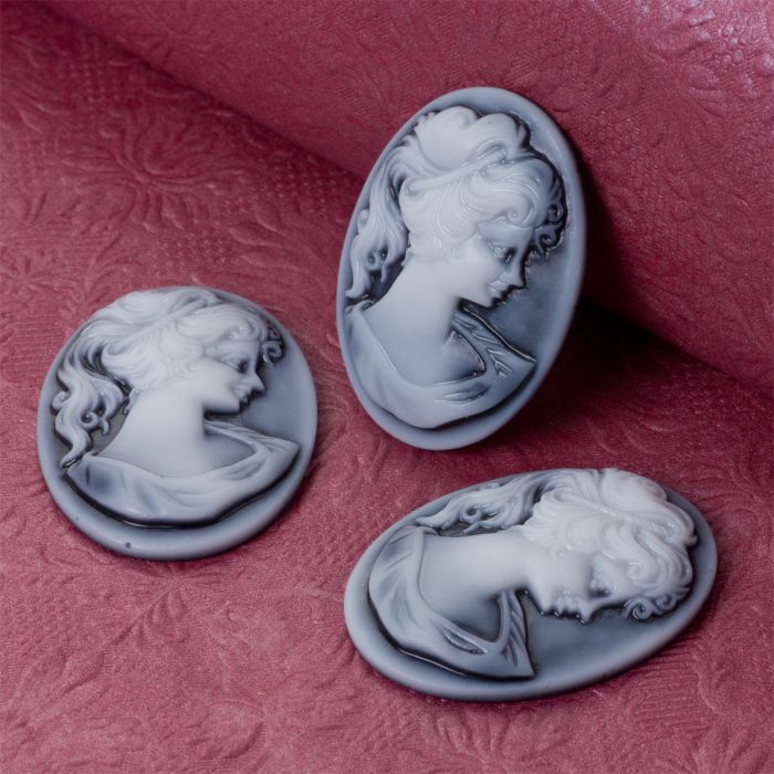 Kaboszon akrylowy kamea z grecką boginią czarno szara 37x28mm