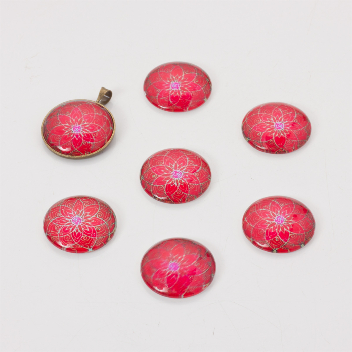 Kaboszon szklany kalejdoskop 20mm czerwony