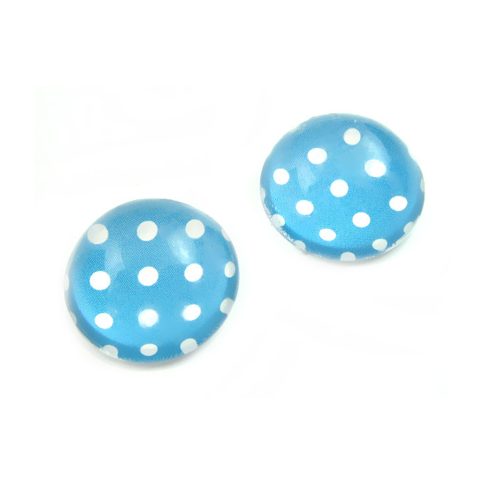 Kaboszon szklany okrągły białe kropki w turkusie 20mm