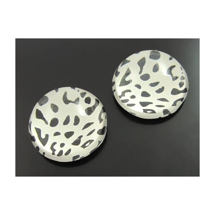 Kaboszon szklany okrągły czarne ciapki w bieli 20mm