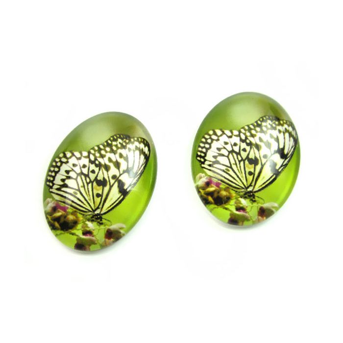 Kaboszon szklany owalny dostojny motyl 18x25mm