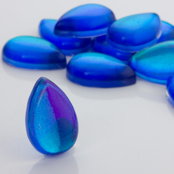 Kaboszon ze szkła kryształowego łezka niebieska 30x20mm