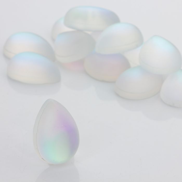 Kaboszon ze szkła kryształowego łezka opalizująca biała 25x18mm