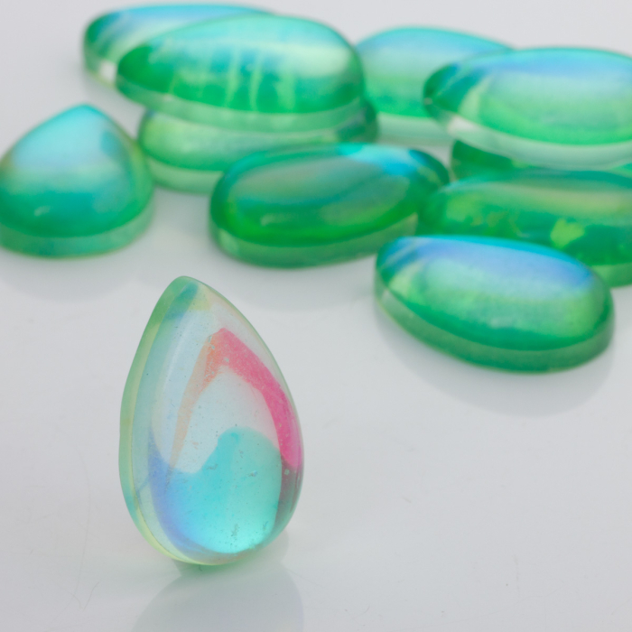Kaboszon ze szkła kryształowego łezka zielona 30x20mm