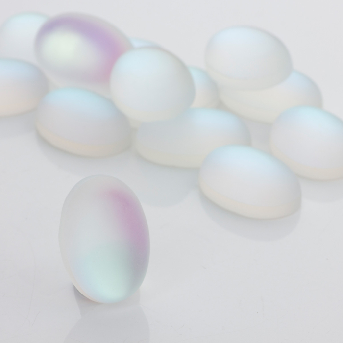 Kaboszon ze szkła kryształowego owal opalizujący biały 28x18mm