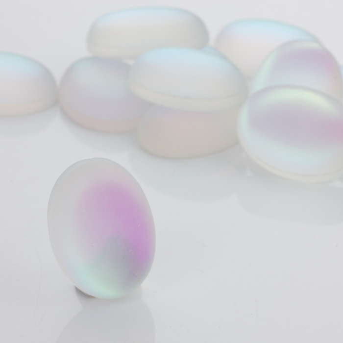 Kaboszon ze szkła kryształowego owal opalizujący biały 30x20mm