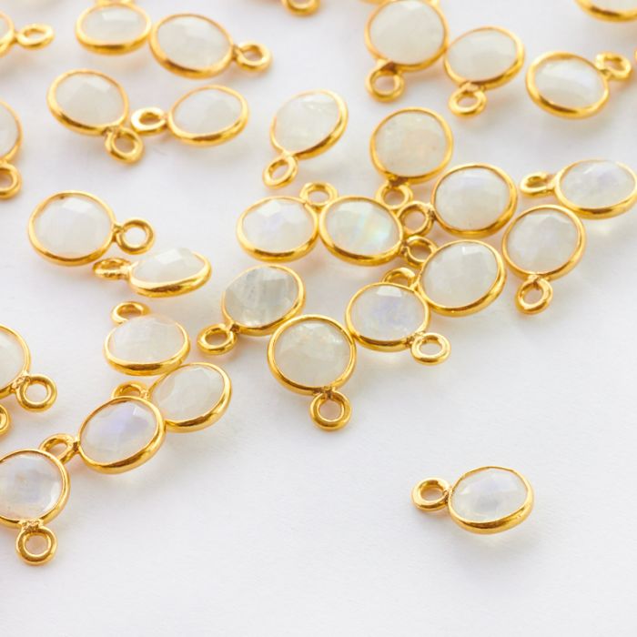 Kamień księżycowy krążek fasetowany w okuciu zawieszka AG925 pozłacana 6mm
