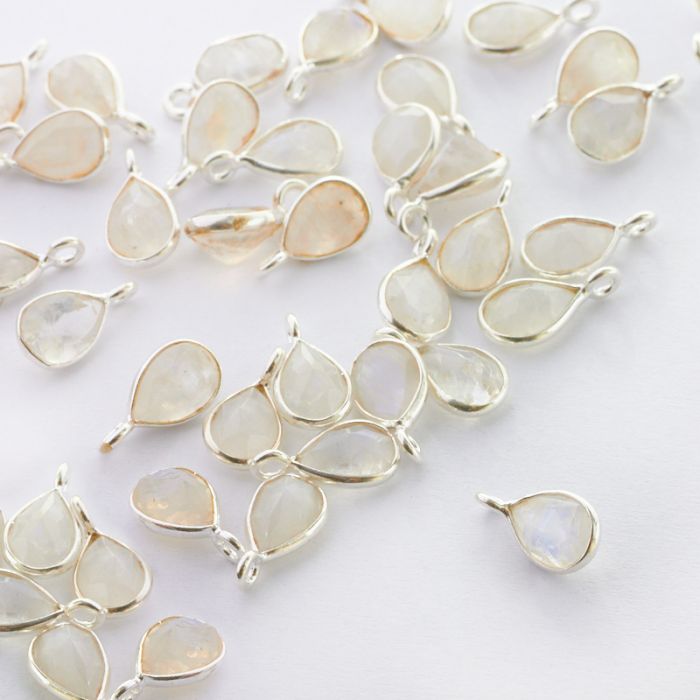 Kamień księżycowy łezka fasetowana w okuciu zawieszka AG925 7mm