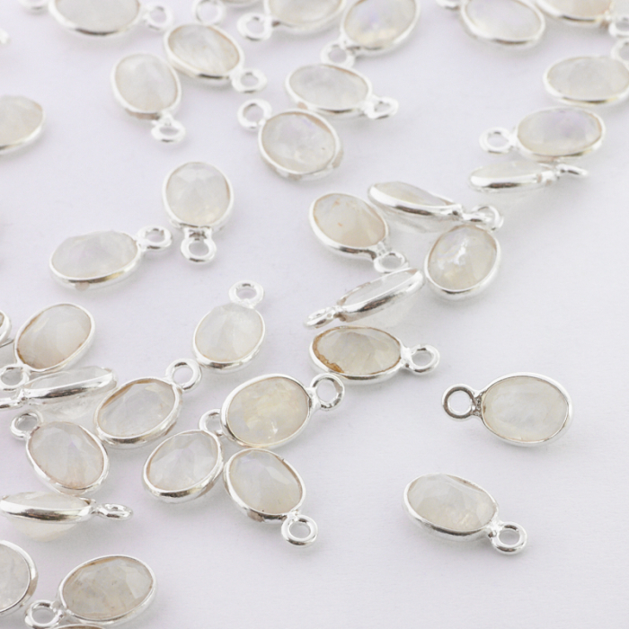 Kamień księżycowy owal fasetowany w okuciu zawieszka AG925 7mm
