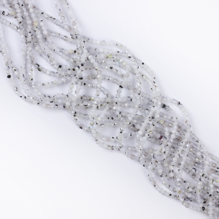 Kamień księżycowy z czarnym turmalinem kulka fasetowana 2mm - na sznurze