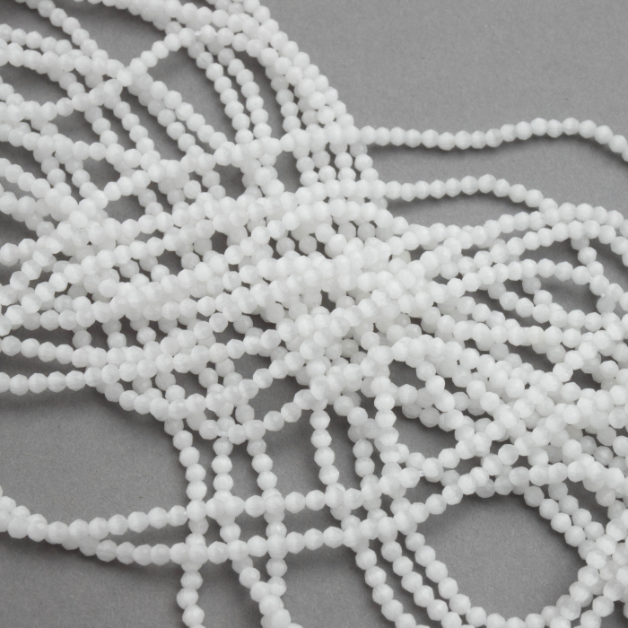 Drobne, fasetowane kulki wykonane z kamienia zwanego kocie oko w kolorze białym. Dzięki fasetowaniu pięknie się błyszczą. Charakterystyka: