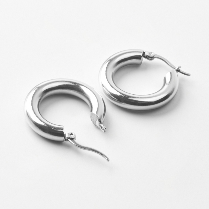 Kolczyki grube koła ze stali chirurgicznej w kolorze srebrnym 25,5mmTo estetyczny element biżuteryjny ze stali szlachetnej, chętnie wybierany do nowoczesnych projektów. W biżuterii handmade stal szlachetna jest ceniona za dobry wygląd, odporność na korozję i wygodę codziennego użytkowania.Element do kolczyków wykonany ze stali szlachetnej to praktyczna baza do tworzenia wygodnej i trwałej biżuterii. Dzięki prostej formie można go wykorzystać zarówno w minimalistycznych projektach, jak i w bardziej ozdobnych kompozycjach z kamieniami, perłami lub zawieszkami.Rozmiar