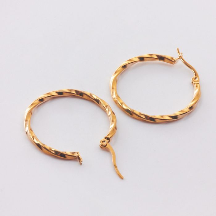 Kolczyki koła skręcane ze stali chirurgicznej w kolorze złotym 30mm