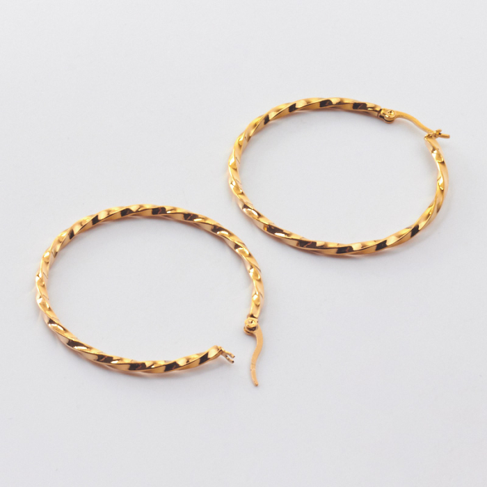 Kolczyki koła skręcane ze stali chirurgicznej w kolorze złotym 45mmTo estetyczny element biżuteryjny ze stali chirurgicznej 316L, chętnie wybierany do nowoczesnych projektów. Stal chirurgiczna 316L dobrze sprawdza się w biżuterii noszonej na co dzień, ponieważ łączy trwałość z estetycznym wykończeniem.Element do kolczyków wykonany ze stali chirurgicznej 316L to praktyczna baza do tworzenia wygodnej i trwałej biżuterii. Dzięki prostej formie można go wykorzystać zarówno w minimalistycznych projektach, jak i w bardziej ozdobnych kompozycjach z kamieniami, perłami lub zawieszkami.Rozmiar