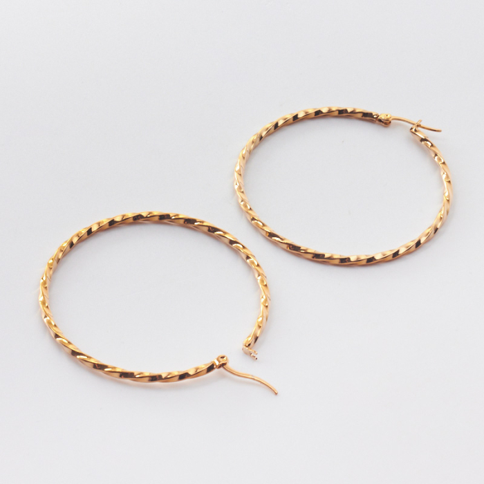 Kolczyki koła skręcane ze stali chirurgicznej w kolorze złotym 55mm