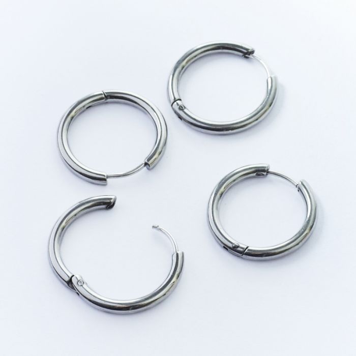 Kolczyki koła zapinane ze stali chirurgicznej w kolorze srebrnym 19mm