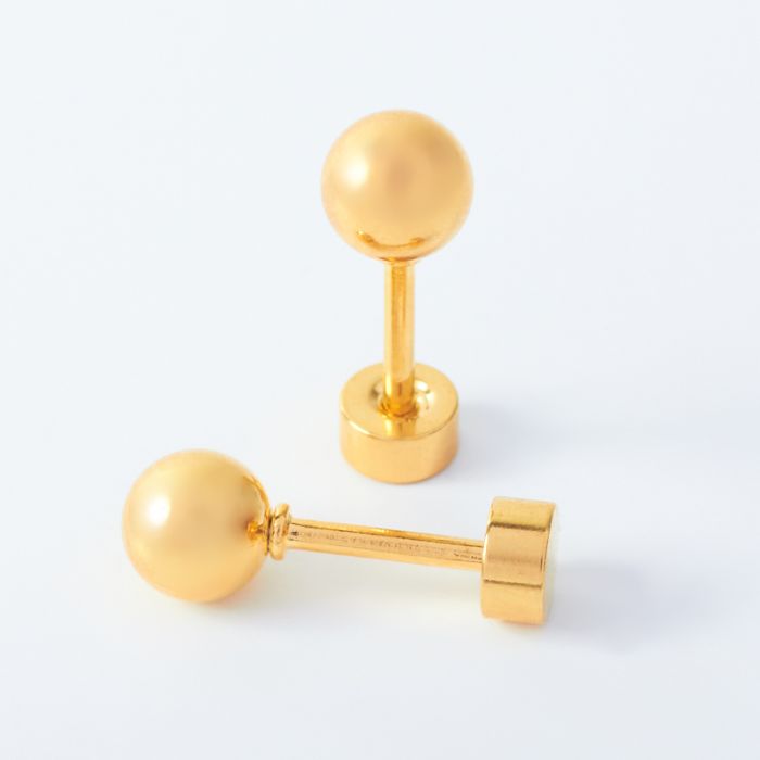 Kolczyki kulki ze stali chirurgicznej w kolorze złotym 5mm
