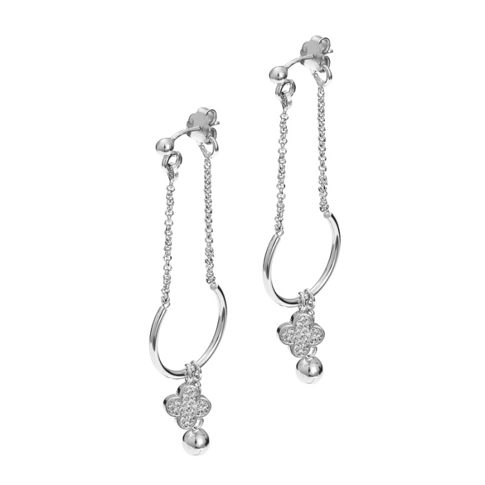Kolczyki rodowane z kwiatkiem z cyrkoniami AG925