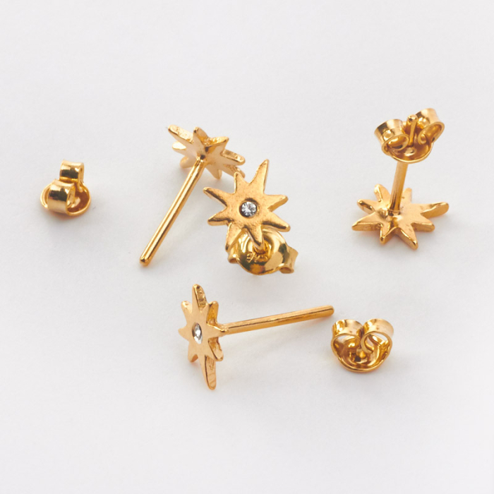 Kolczyki róża wiatrów z cyrkonią z barankami pozłacane 8 mm