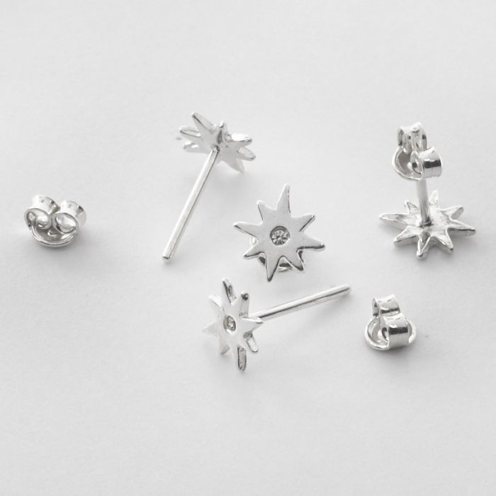 Kolczyki róża wiatrów z cyrkonią z barankami srebrny 8 mm