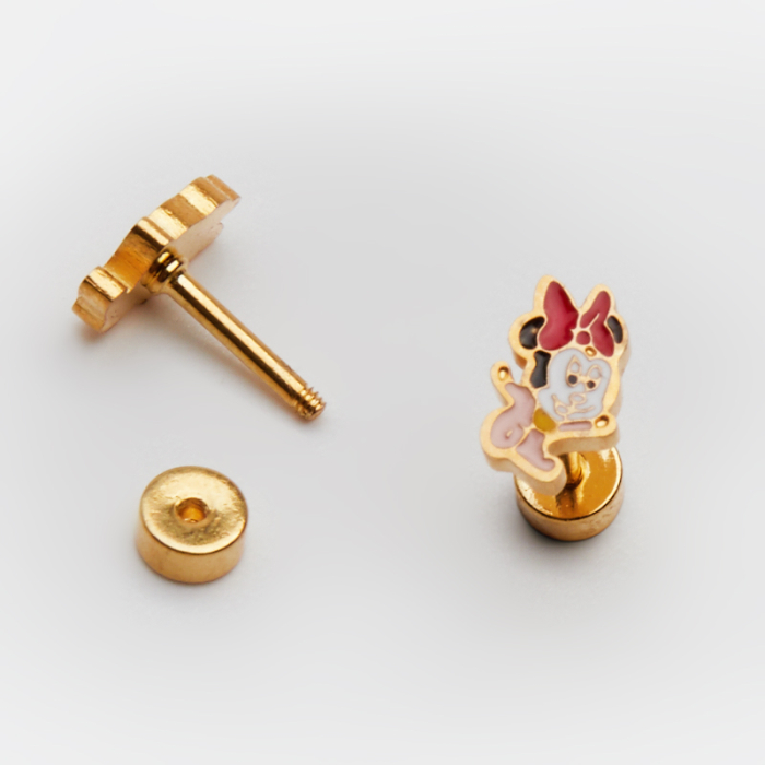 Kolczyki sztyfty dziecięce ze stali chirurgicznej Myszka Minnie w kolorze złotym 8mm