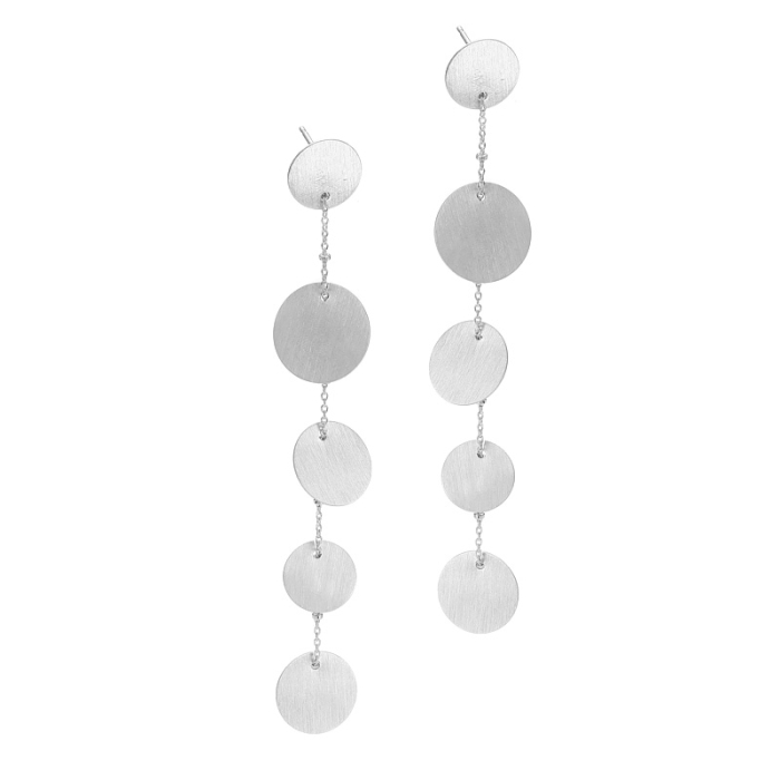 Kolczyki wiszące rodowane z kółkami satynowymi AG925