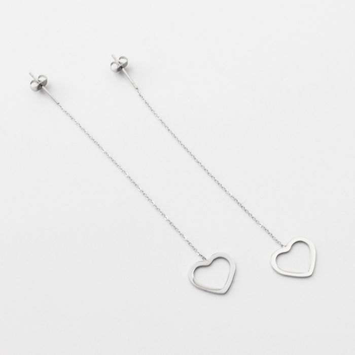 Kolczyki wiszące ze stali chirurgicznej serca w kolorze srebrnym 13,5cm