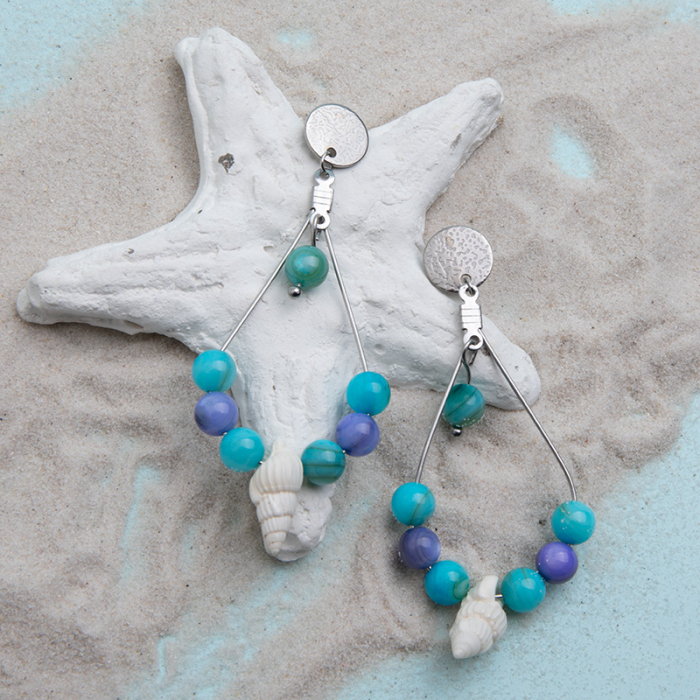 Kolczyki z masy perłowej w pastelowych odcieniach z muszelką