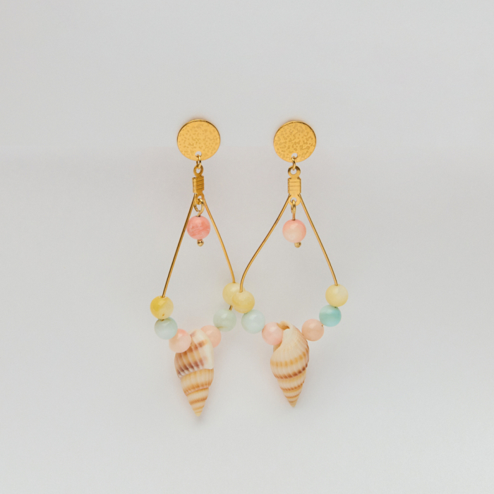 Kolczyki z muszelką i masą perłową na złotej bazie