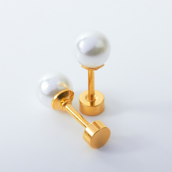 Kolczyki z perłami ze stali chirurgicznej w kolorze złotym 6mm