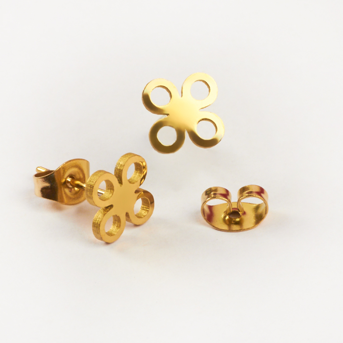Kolczyki ze stali chirurgicznej cztery kółka w kolorze złotym 7,4mmTo starannie wykonany produkt ze stali chirurgicznej 316L, który dobrze prezentuje się w codziennym użytkowaniu. Stal chirurgiczna 316L jest ceniona za odporność na korozję i estetyczny wygląd w codziennym użytkowaniu.Element do kolczyków wykonany ze stali chirurgicznej 316L to praktyczna baza do tworzenia wygodnej i trwałej biżuterii. Dzięki prostej formie można go wykorzystać zarówno w minimalistycznych projektach, jak i w bardziej ozdobnych kompozycjach z kamieniami, perłami lub zawieszkami.Rozmiar