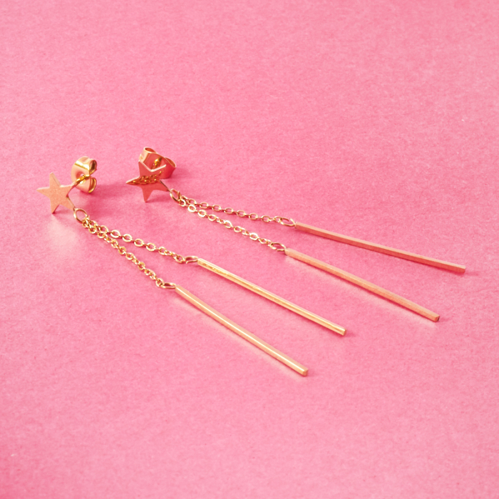 Kolczyki ze stali chirurgicznej gwiazdka i patyczki w kolorze złotym 6cm