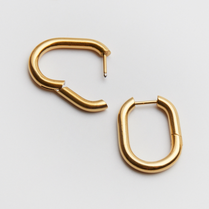 Kolczyki ze stali chirurgicznej kajdanki okrągły owal w kolorze złotym 23mm PVDTo starannie wykonany produkt ze stali chirurgicznej 316L, który dobrze prezentuje się w codziennym użytkowaniu. Stal chirurgiczna 316L jest ceniona za odporność na korozję i estetyczny wygląd w codziennym użytkowaniu. Wykończenie w kolorze złotym uzyskane metodą PVD.Element do kolczyków wykonany ze stali chirurgicznej 316L to praktyczna baza do tworzenia wygodnej i trwałej biżuterii. Dzięki prostej formie można go wykorzystać zarówno w minimalistycznych projektach, jak i w bardziej ozdobnych kompozycjach z kamieniami, perłami lub zawieszkami.Rozmiar