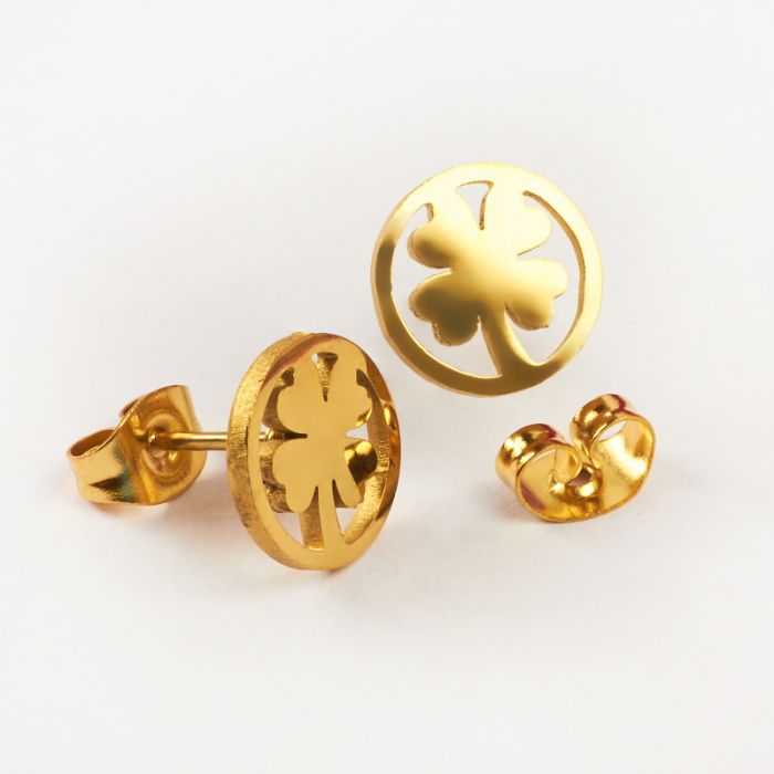 Kolczyki ze stali chirurgicznej koniczynka w kółku w kolorze złotym 9,5mm