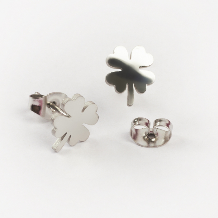 Kolczyki ze stali chirurgicznej koniczynka w kolorze srebrnym 9,5x6,5mmTo trwały element biżuterii lub półfabrykat jubilerski, który dobrze sprawdza się w codziennych realizacjach. W biżuterii handmade stal chirurgiczna 316L jest ceniona za dobry wygląd, odporność na korozję i wygodę codziennego użytkowania.Element do kolczyków wykonany ze stali chirurgicznej 316L to praktyczna baza do tworzenia wygodnej i trwałej biżuterii. Dzięki prostej formie można go wykorzystać zarówno w minimalistycznych projektach, jak i w bardziej ozdobnych kompozycjach z kamieniami, perłami lub zawieszkami.Rozmiar