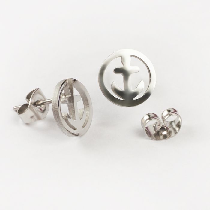 Kolczyki ze stali chirurgicznej kotwica w kolorze srebrnym 9,5mm