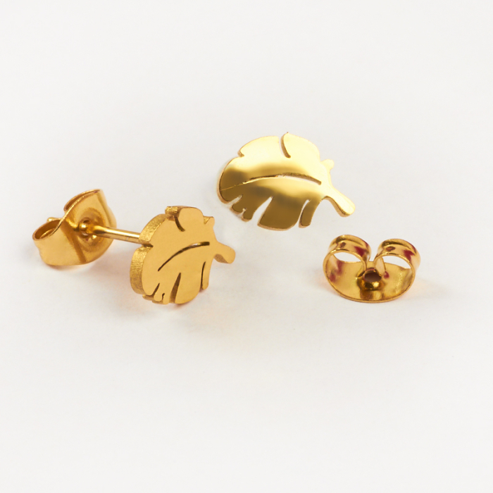 Kolczyki ze stali chirurgicznej liść monstery w kolorze złotym 6x9mm