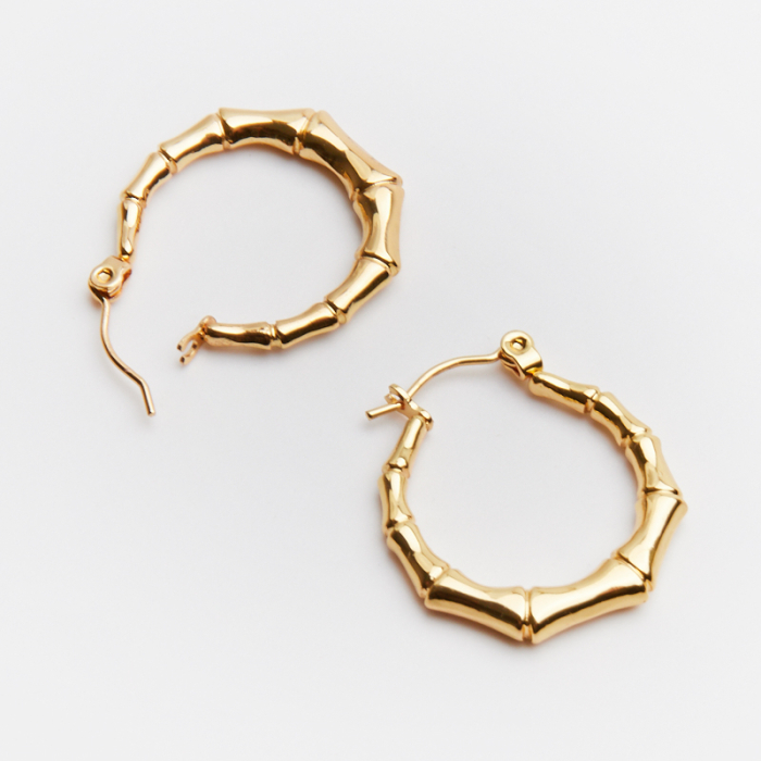 Kolczyki ze stali chirurgicznej ozdobne kółko z klepsydrami w kolorze złotym 23mm PVDTo estetyczny element biżuteryjny ze stali chirurgicznej 316L, chętnie wybierany do nowoczesnych projektów. W biżuterii handmade stal chirurgiczna 316L jest ceniona za dobry wygląd, odporność na korozję i wygodę codziennego użytkowania. Wykończenie w kolorze złotym uzyskane metodą PVD.Element do kolczyków wykonany ze stali chirurgicznej 316L to praktyczna baza do tworzenia wygodnej i trwałej biżuterii. Dzięki prostej formie można go wykorzystać zarówno w minimalistycznych projektach, jak i w bardziej ozdobnych kompozycjach z kamieniami, perłami lub zawieszkami.Rozmiar