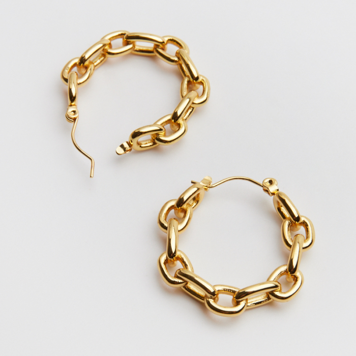 Kolczyki ze stali chirurgicznej ozdobne kółko z ogniwkami w kolorze złotym 31mm PVDTo starannie wykonany produkt ze stali chirurgicznej 316L, który dobrze prezentuje się w codziennym użytkowaniu. W biżuterii handmade stal chirurgiczna 316L jest ceniona za dobry wygląd, odporność na korozję i wygodę codziennego użytkowania. Wykończenie w kolorze złotym uzyskane metodą PVD.Element do kolczyków wykonany ze stali chirurgicznej 316L to praktyczna baza do tworzenia wygodnej i trwałej biżuterii. Dzięki prostej formie można go wykorzystać zarówno w minimalistycznych projektach, jak i w bardziej ozdobnych kompozycjach z kamieniami, perłami lub zawieszkami.Rozmiar