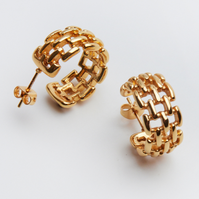 Kolczyki ze stali chirurgicznej ozdobne kółko z plecionką w kolorze złotym 21,5mm PVD