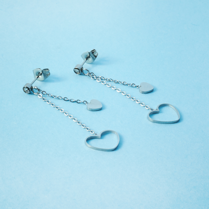 Kolczyki ze stali chirurgicznej serce wycięte w kolorze srebrnym 4,5cm