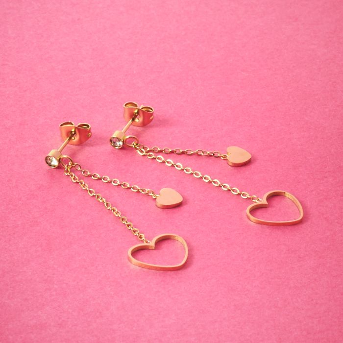 Kolczyki ze stali chirurgicznej serce wycięte w kolorze złotym 4,5cm