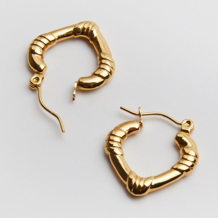 Kolczyki ze stali chirurgicznej ucięte caro z pręgami w kolorze złotym 21mm PVD
