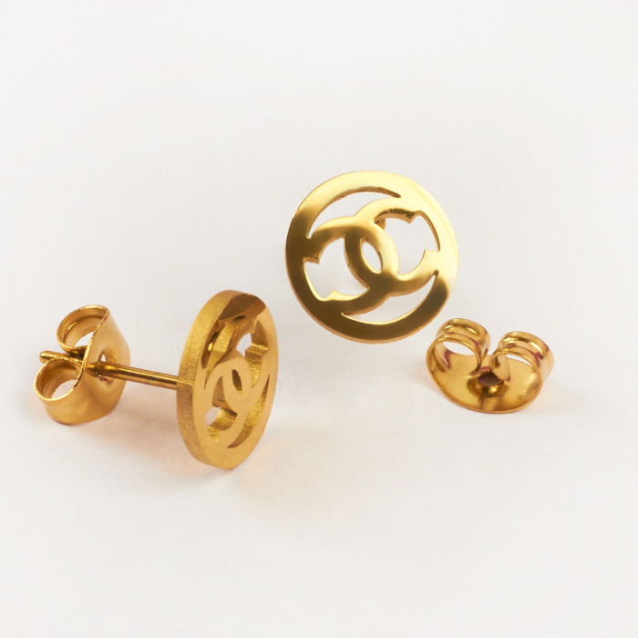 Kolczyki ze stali chirurgicznej wzorek w kolorze złotym 8mm