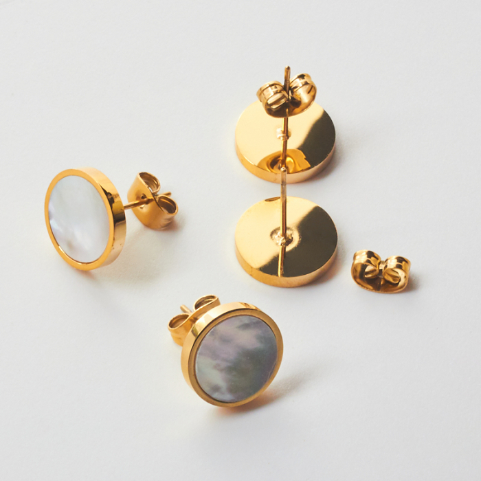 Kolczyki ze stali chirurgicznej z masą perłową kółko w kolorze złotym 11,5mmTo estetyczny element biżuteryjny ze stali chirurgicznej 316L, chętnie wybierany do nowoczesnych projektów. Stal chirurgiczna 316L dobrze sprawdza się w biżuterii noszonej na co dzień, ponieważ łączy trwałość z estetycznym wykończeniem.Element do kolczyków wykonany ze stali chirurgicznej 316L to praktyczna baza do tworzenia wygodnej i trwałej biżuterii. Dzięki prostej formie można go wykorzystać zarówno w minimalistycznych projektach, jak i w bardziej ozdobnych kompozycjach z kamieniami, perłami lub zawieszkami.Rozmiar
