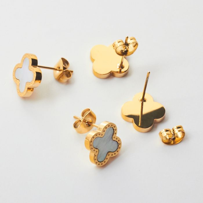 Kolczyki ze stali chirurgicznej z masą perłową kończyna marokańska w kolorze złotym 11x11mm