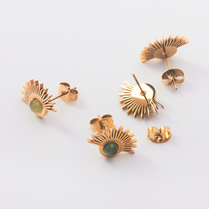 Kolczyki ze stali chirurgicznej z zielonym awenturynem w kolorze złotym 10,5mmTo starannie wykonany produkt ze stali chirurgicznej 316L, który dobrze prezentuje się w codziennym użytkowaniu. Stal chirurgiczna 316L jest ceniona za odporność na korozję i estetyczny wygląd w codziennym użytkowaniu.Element do kolczyków wykonany ze stali chirurgicznej 316L to praktyczna baza do tworzenia wygodnej i trwałej biżuterii. Dzięki prostej formie można go wykorzystać zarówno w minimalistycznych projektach, jak i w bardziej ozdobnych kompozycjach z kamieniami, perłami lub zawieszkami.Rozmiar