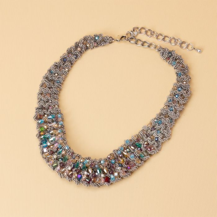 Kolia z drobnych łańcuszków z kryształkami 50cm