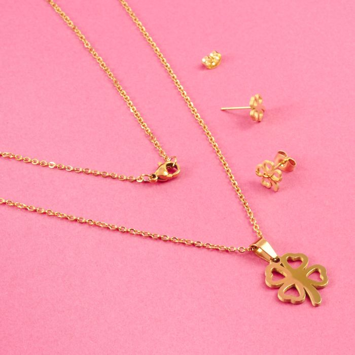 Komplet biżuterii ze stali chirurgicznej kończynka wycinana w kolorze złotym 45cm