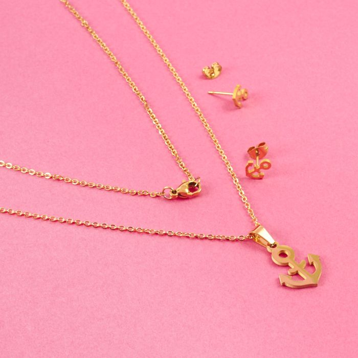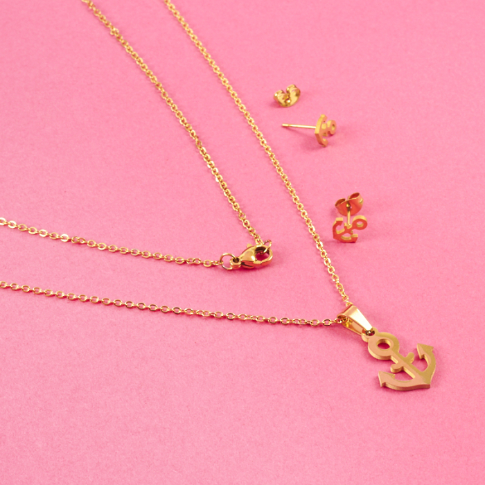 Komplet biżuterii ze stali chirurgicznej kotwica w kolorze złotym 45cm